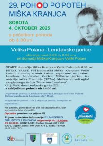 Planinsko društvo Lendava vas v soboto, 4. 10. 2025, vabi na tradicionalni pohod.